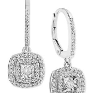 Diamond Halo Drop Earrings (1/2 ct. t.w.) in Sterling Silver, 14k Rose Gold Sterling Silver & 16k Gold Sterling Silver.